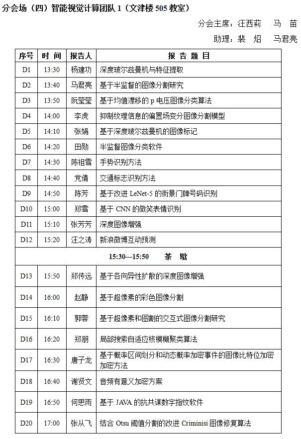 分会场(四):研究生专场(智能视觉计算团队1) 长安校区文津楼505教室